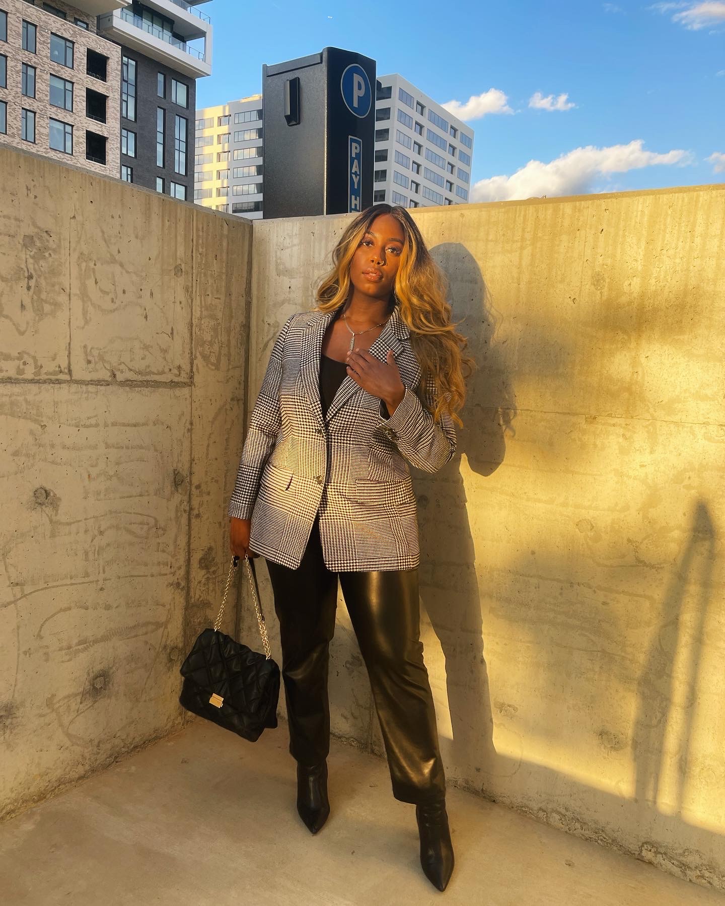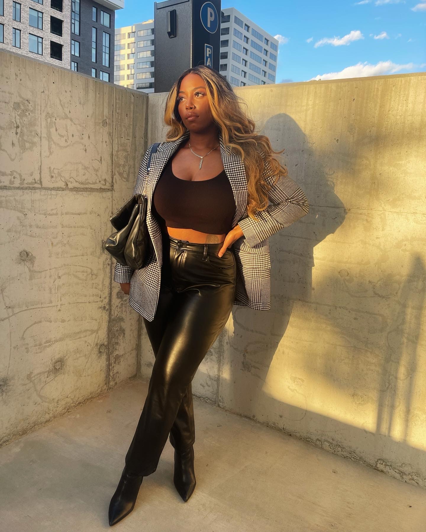 I found these leather pants from Abercrombie via a Tik Tok. The girl was curvy like me and the pants fit her like a glove! My biggest issue when searching for leather pants has been the fit and lack of stretch. I’ve tried on leather pants that fit great in the legs, but were low rise. Or leather pants that were high waisted, and way too short on my legs.